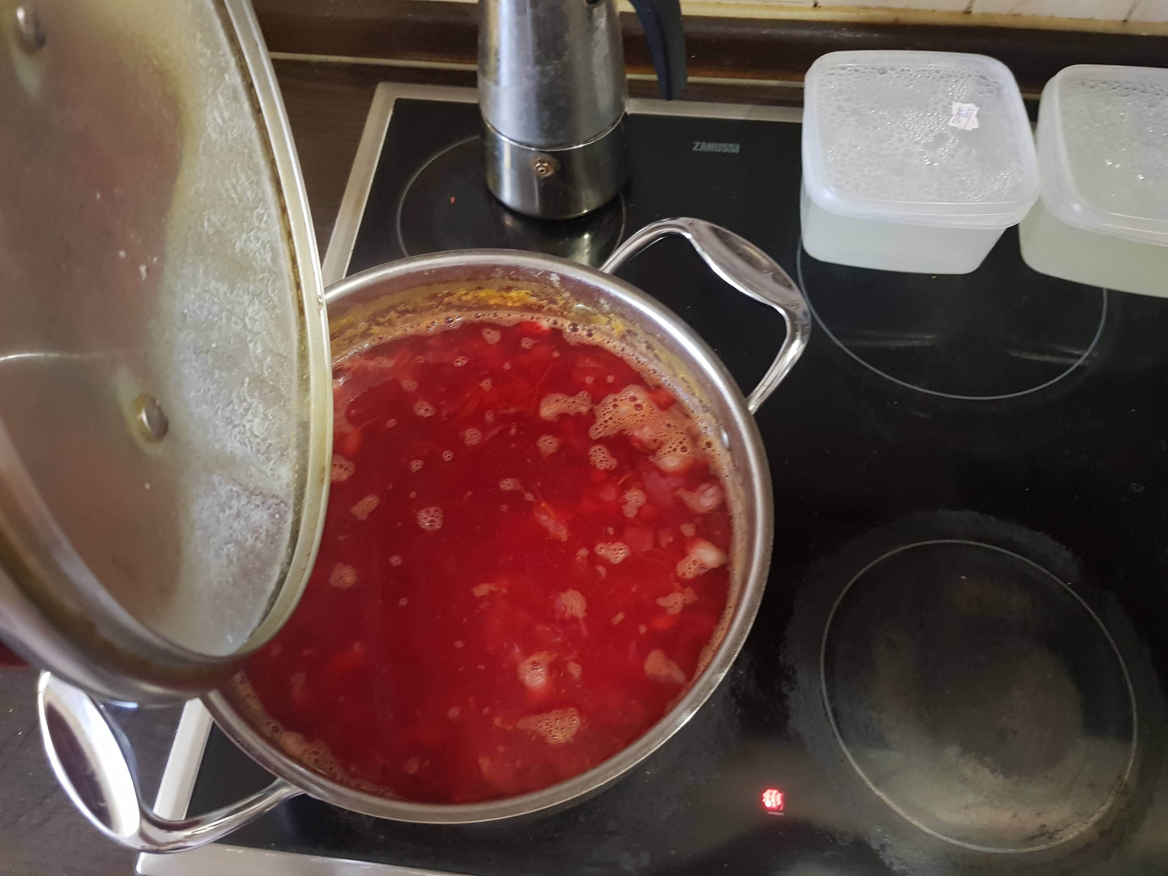 А тут уже и борщ готов! И два будущих "бульонных кубика" остужаются в контейнерах:)